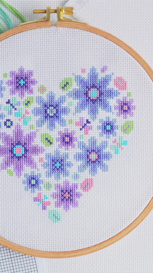 Sold outMini Floral Heart Cross Stitch Kit