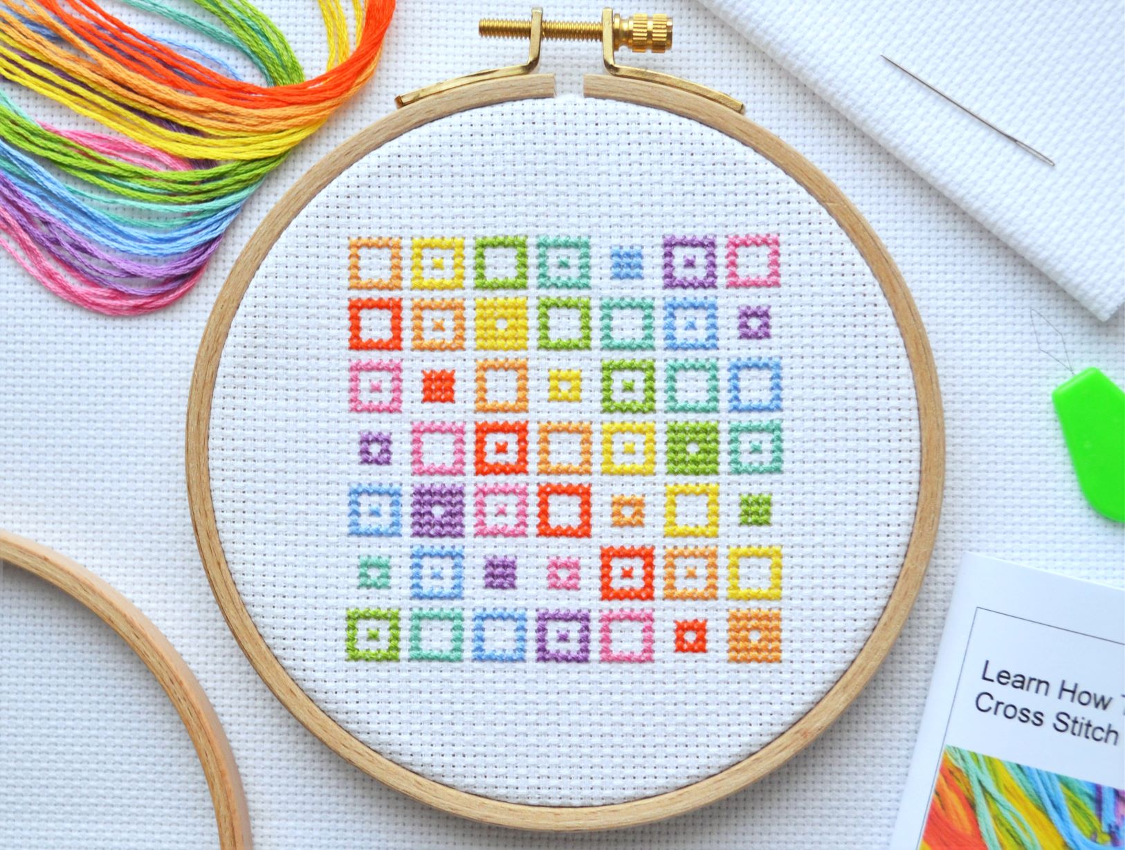 This kit and booklet teaches traditional ‘counted cross stitch’ kit: you’ll refer to the printed colour chart in the kit and stitch on plain fabric. You’ll learn the skills and confidence needed to pick up any cross stitch project and know exactly what to do.