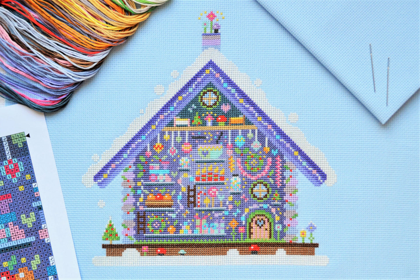 Available here is this complete cross stitch kit containing everything you need to stitch this 'Fairy Cottage' Christmas scene. This is where the magic of Christmas is made! From fairy lights to tinsel, this colourful scene is full of festive cheer with plenty of cute motifs to find and stitch.