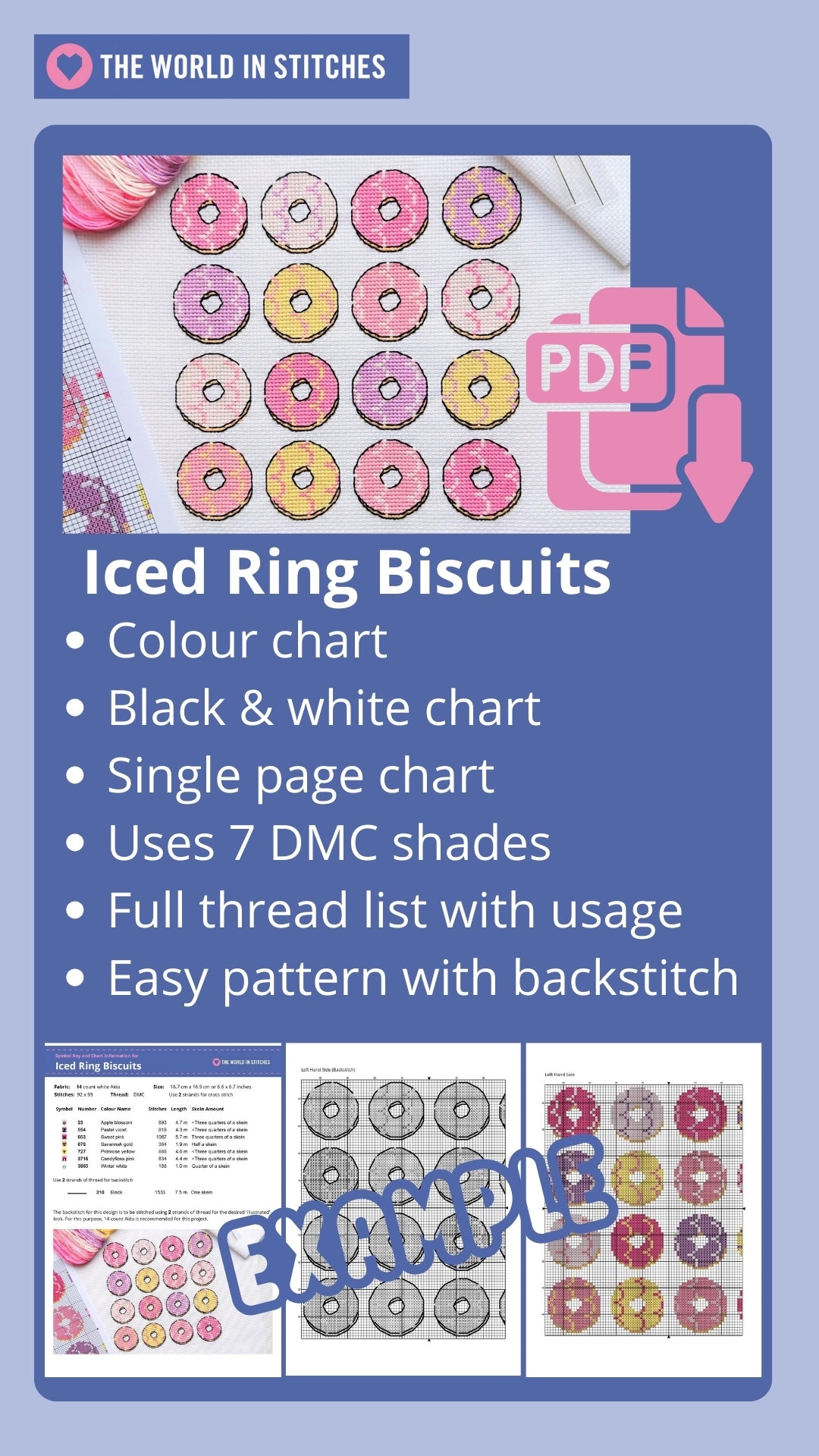 Available here is the complete digital cross stitch chart for 'Iced Ring Biscuits' which will be made available to you immediately after purchase. You'll be able to download and keep the PDF file.
