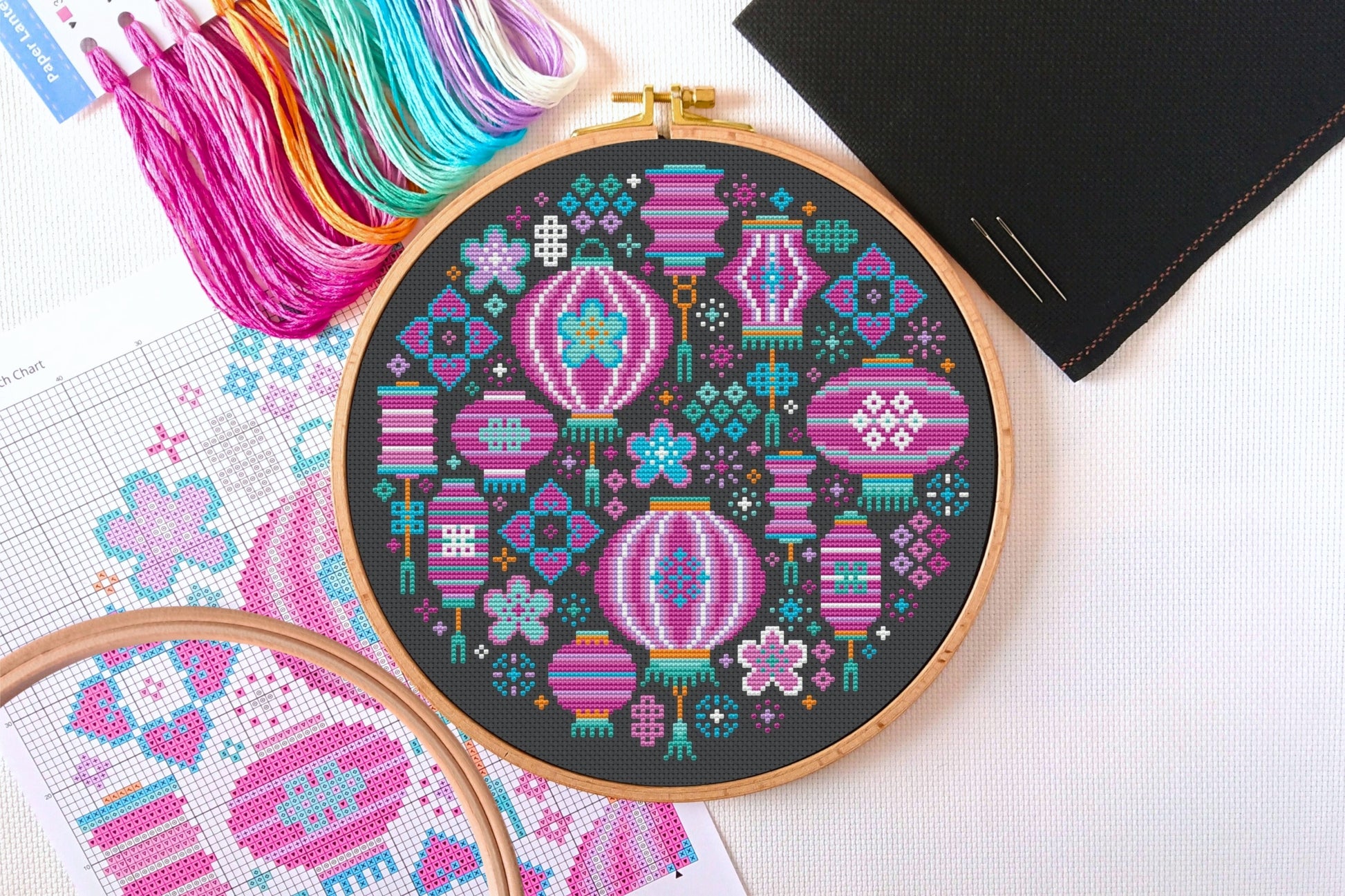 Available here is the complete digital cross stitch chart for this 'Paper Lanterns' pattern which will be made available to you immediately after purchase. You'll be able to download and keep the PDF files.